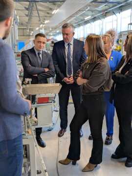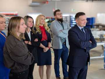 To już druga wizyta Pana Ministra w naszej siedzibie – podczas pierwszego spotkania, w sierpniu, zaprezentowaliśmy linię produkcyjną, którą wówczas rozpoczynaliśmy montować. Dziś linia jest niemal ukończona, a jej skala i zaawansowanie technologiczne robią jeszcze większe wrażenie.